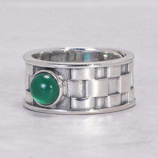925 Sterling Silver Natural Jade Stone Ring for Men Women Braided Pattern Opening Type Adjustable Size 6-10 Vintage Jewelry