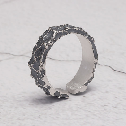 925 Sterling Silver 6mm Hammered Silver Ring for Men Women Oxidized Black Hand Forged Rings Rock Antiqued Matt Wedding Bands Adjustable Size 9-11