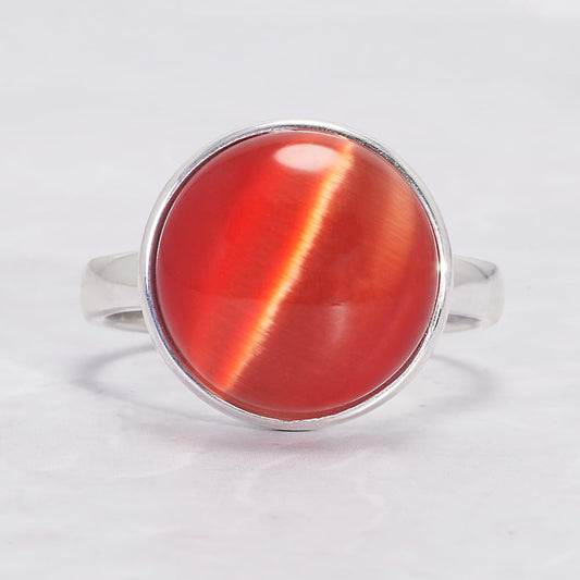 Round Agate Stone Ring for Women Men Minimalist Ring in 925 Sterling Silver 9mm Natural Orange Agate Jewelry Anniversary Gift