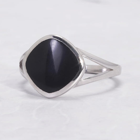 Solid 925 Sterling Silver Smooth Simple Plain Rhombic Shape Ring for Women Black Enamel Female Jewelry