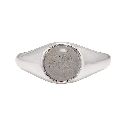 925 Silver 14k Gold Plated Pinky Ring Natural Labradorite Round Shape Gemstone Gold/Silver Plain Signet Rings for Women and Men Stackable Wedding Band
