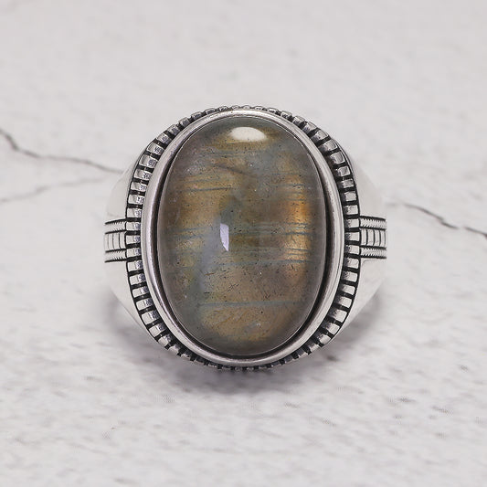 925 Sterling Silver Male Ring Genuine Oval Labradorite Ring Men's Gemstone Ring for Dad Father Size 7-13